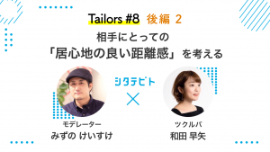 みずの:地域のコミュニティで継続的、持続的に社会課題を解決する仕立て人の皆さんにお話を伺う番組「Tailors」です。モデレーターを務めます、みずの けいすけです。